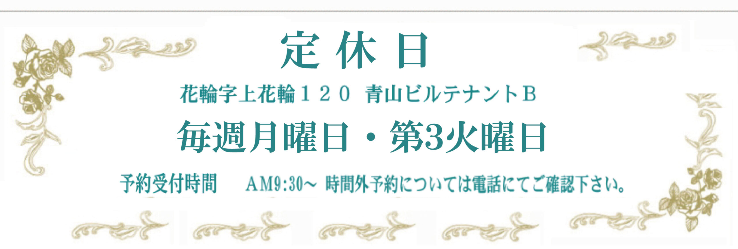 | 定休日 | 毎週月曜日・第3火曜日 (定休日が祝日の場合は営業) |